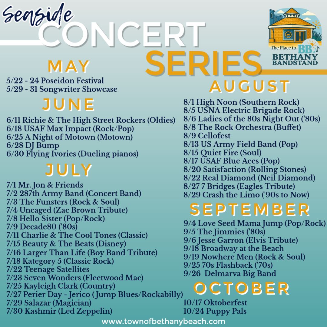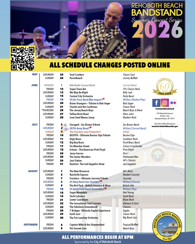 The Rehoboth Beach Bandstand 2026 Concert Series lineup has been announced! For the complete schedule,